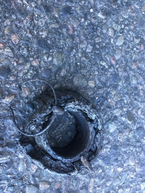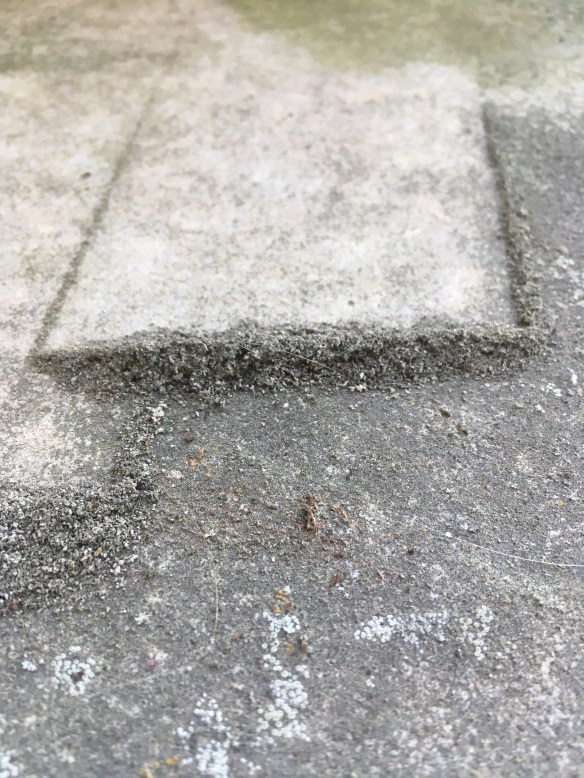 Skrapar en betongyta fri från svamprester och gammal ingrodd skit. Med förhoppning om renhet. Fel. Nu syns skiten bättre. Så varför bry sig?